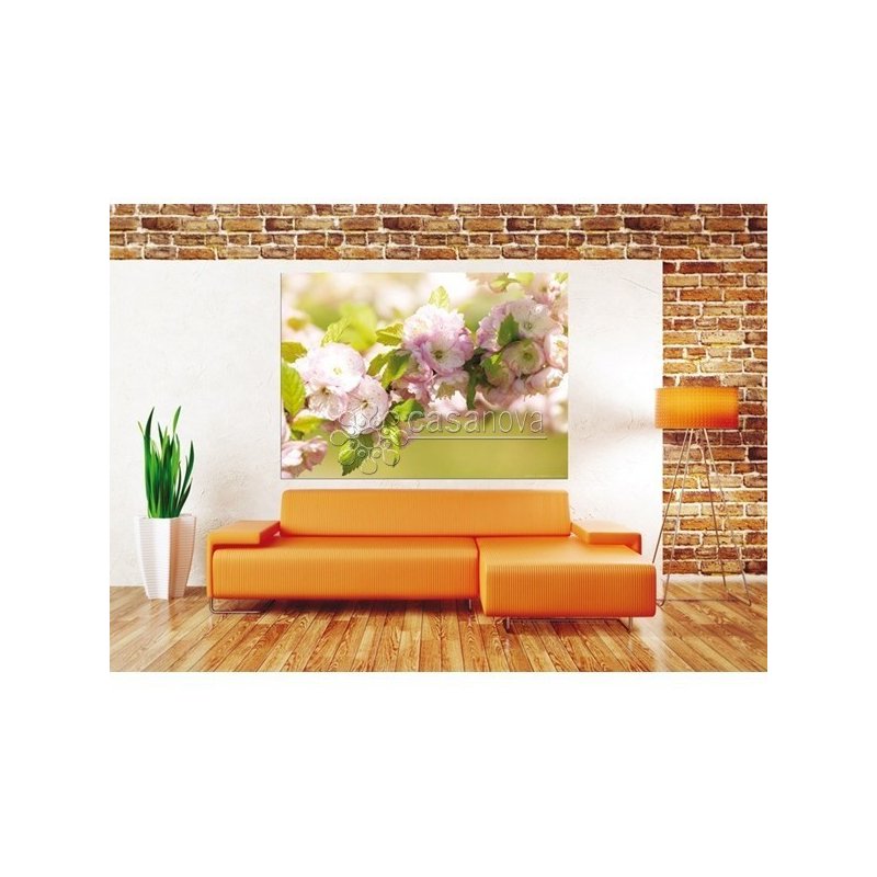 Minifotomural de 160 x 115 cm en tonos rosas y verde ácido con dibujo de flores en rama. Perfecto para crear ambientes frescos, elegantes y darle a tu casa un estilo moderno y alegre a precio económico.