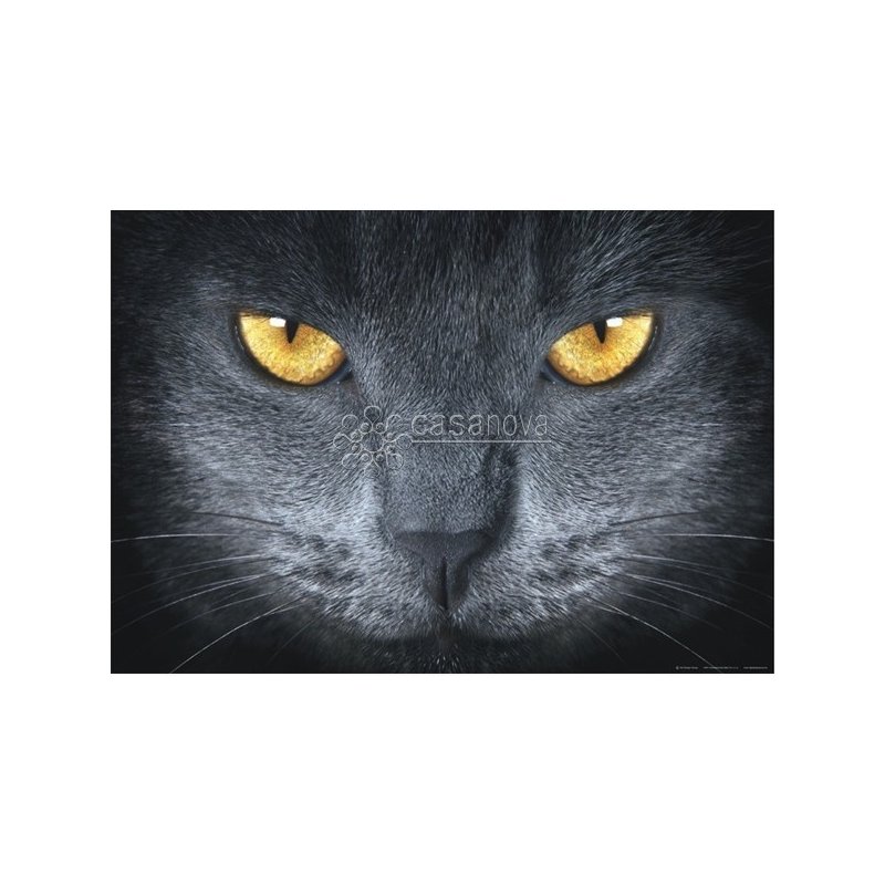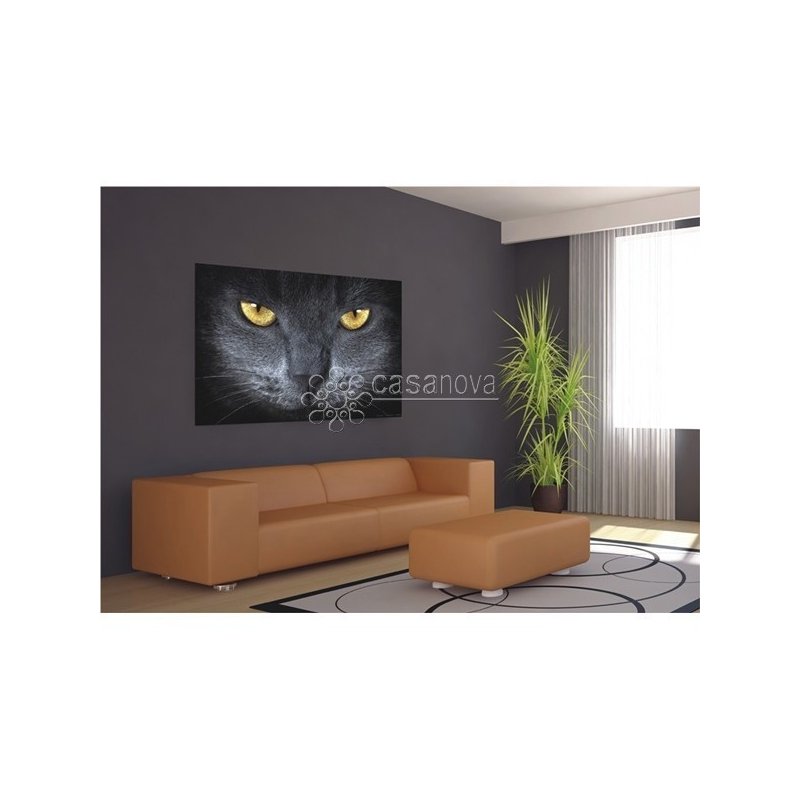 Minifotomural de 160 x 115 representando la cara de un gato gris con unos hipnóticos ojos amarillos. Con este precioso minifotomural dará un toque salvaje a la habitación de su vivienda que elija.