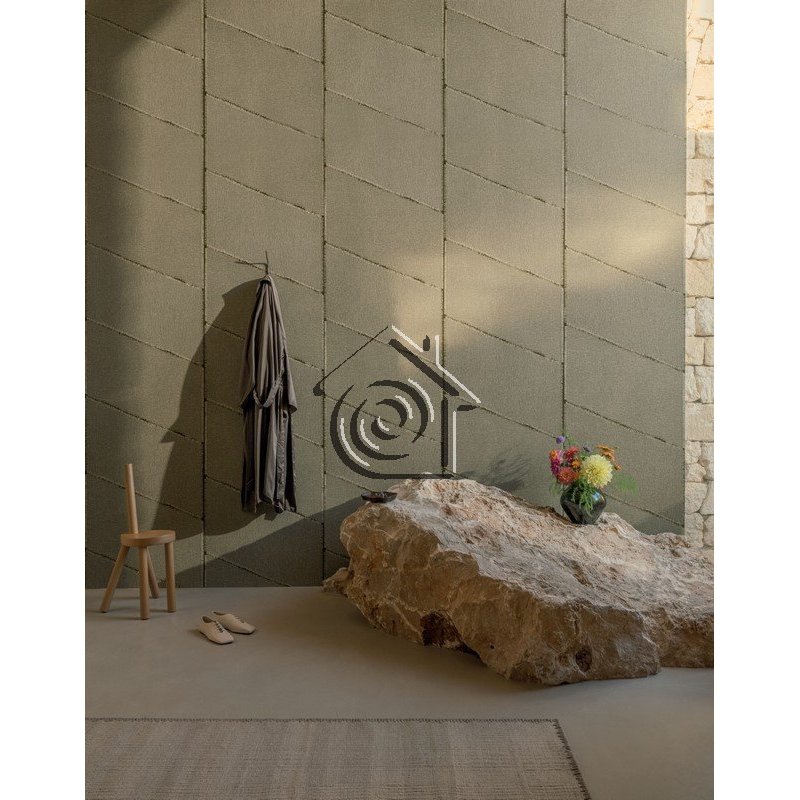 Estas formas trapezoidales e inclinadas evocan el aspecto crudo de los hilos flotantes, similares al tejido de lino.