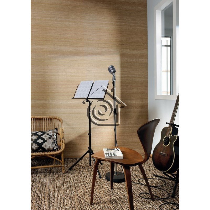 Papel pintado de vinilo gofrado con aspecto de fibra vegetal.